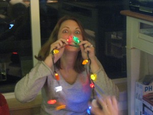 hahahahahahahahaha my new favorite picture!!!!! Lori with X-mas light boogers.