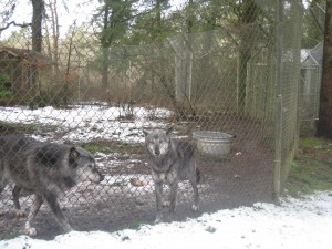 They are separated into enclosures depending on who they get along with…usually two or one in each area. There are about 50 wolves at Wolf Haven, but not all of them are on the tour–they’re either pups or too shy to be in front of the public (from what I understood).