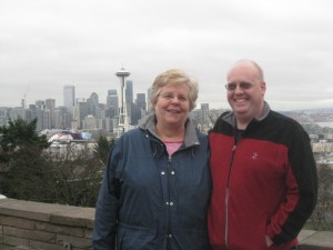 No wonder people get their wedding pictures taken here—look at that background!! Mom and David pose in front of the city.