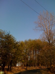 Walking on a beautiful afternoon….if you look hard, you’ll see a dot up in the sky…it’s the moon! It looked beautiful, but in this photo, it just looks small. Oh well!