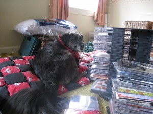 And later, Guinness goes back to being his innocent, cute little self while I work on organizing CDs.