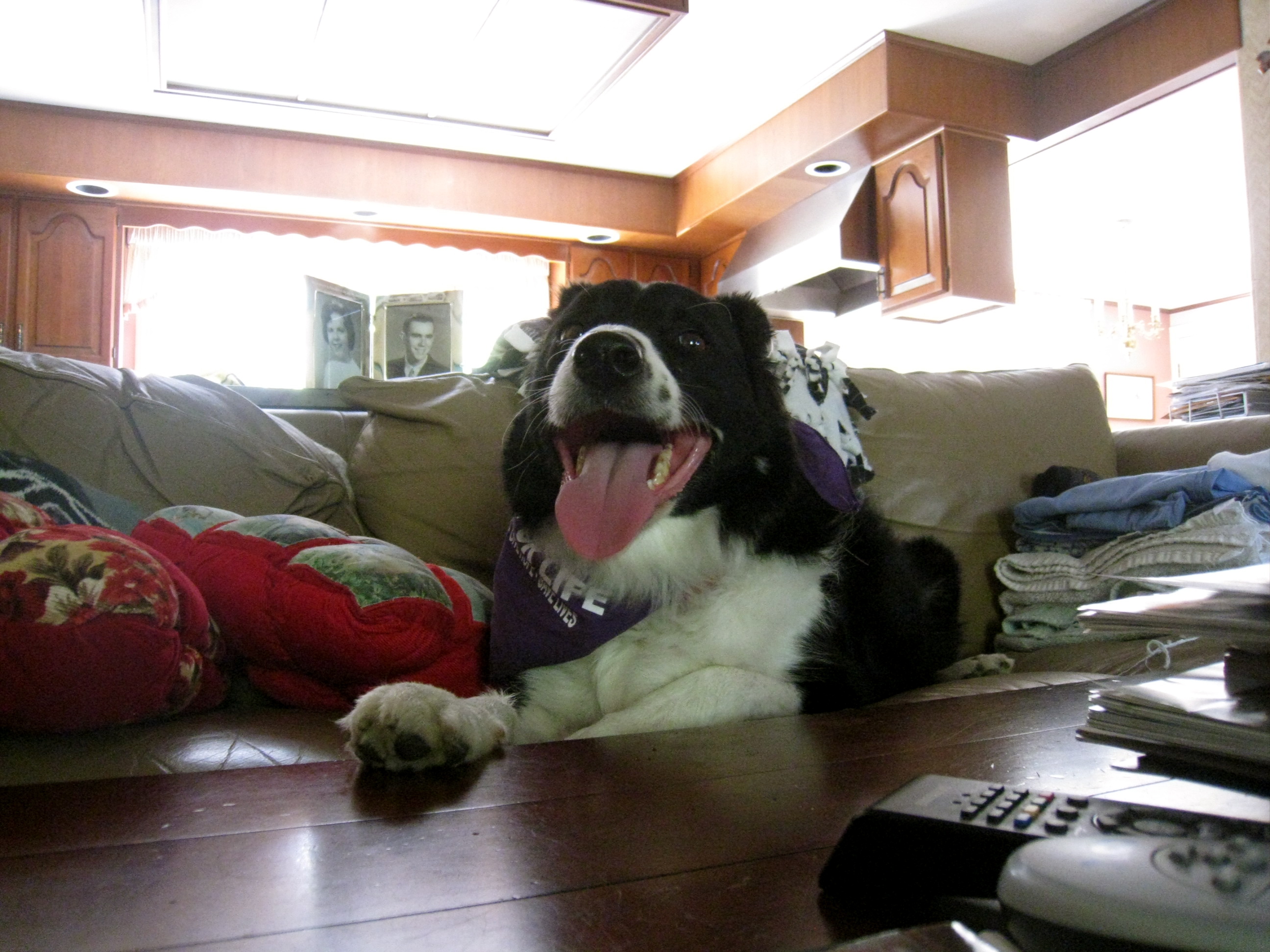 While I do my yoga video, Jameson looks on from the comfort of the couch.