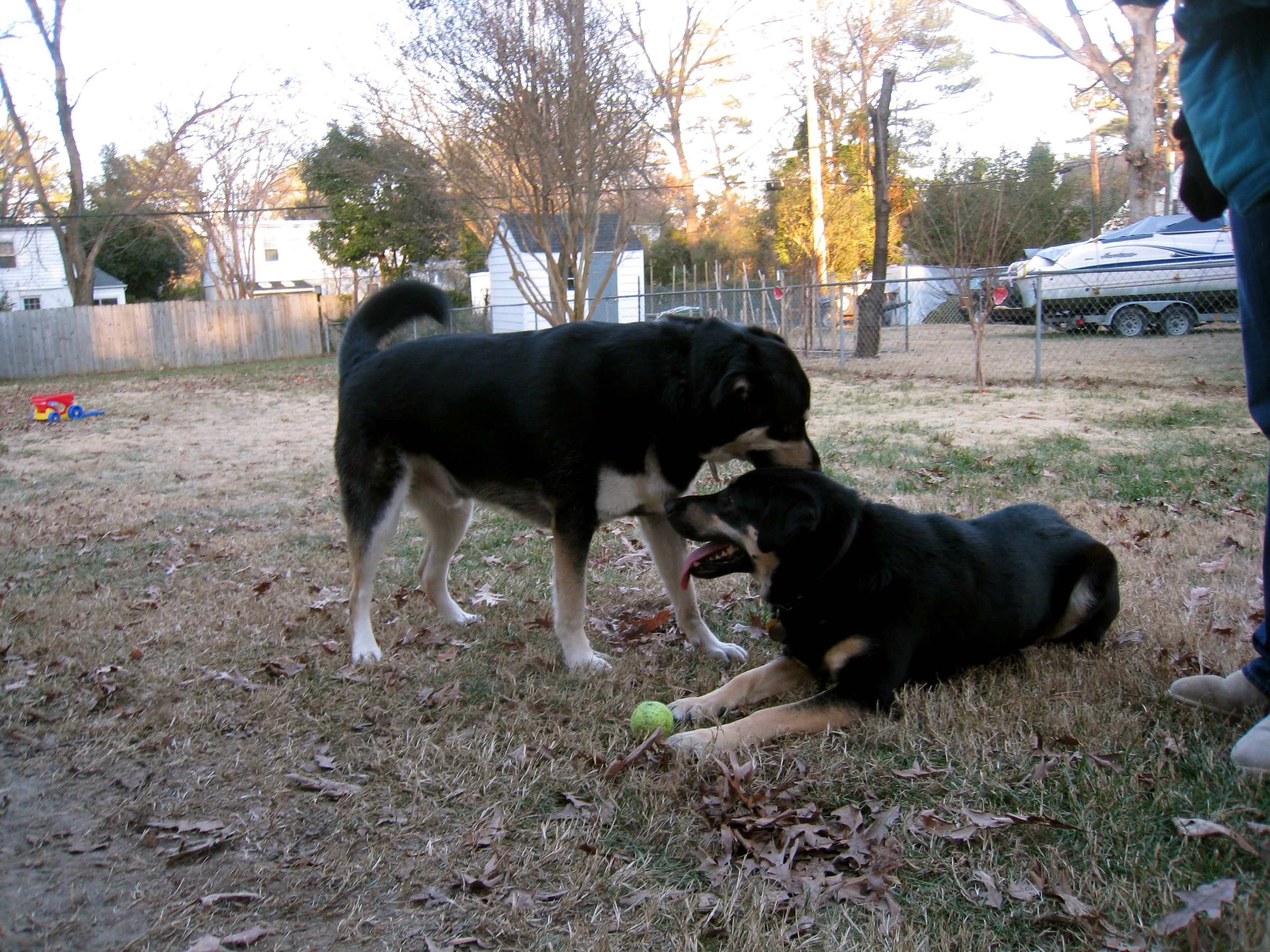 Indie and Klaus playing in Ronnie and Kathy’s backyard.