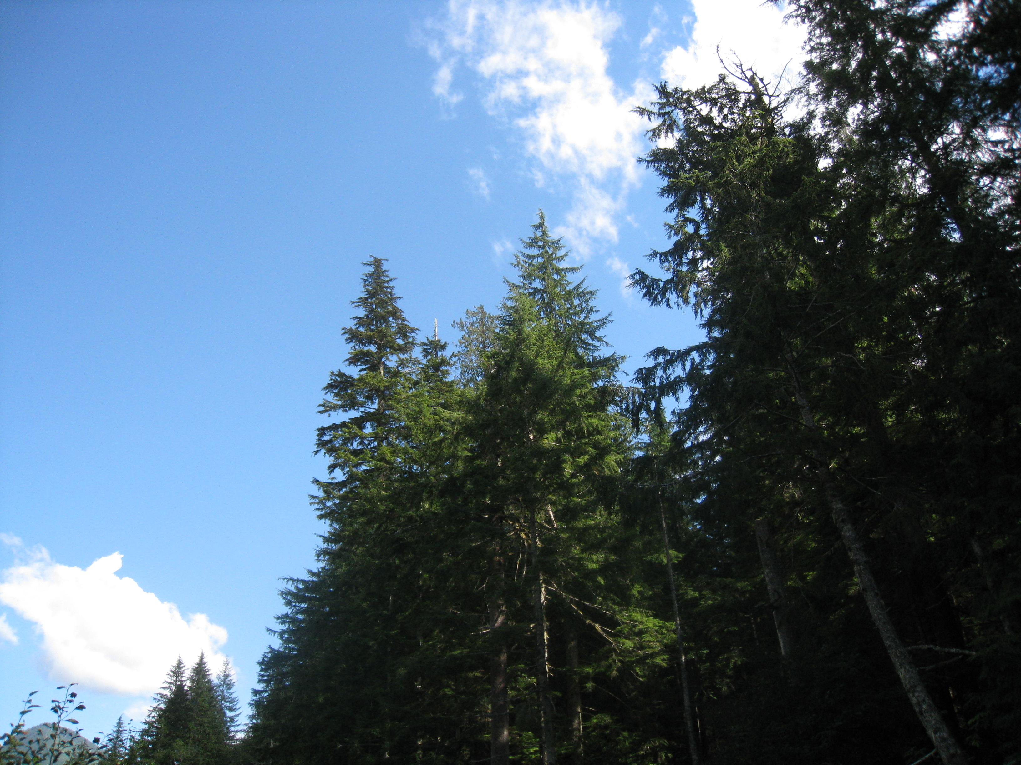 Always remember to look up! There are lots of cool things happening up in the sky…in this one, I love the contrast of the dark green with the blue sky (and dash of white clouds)