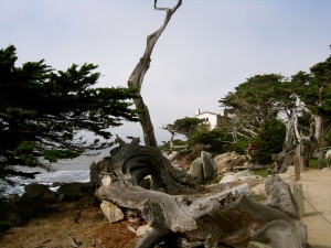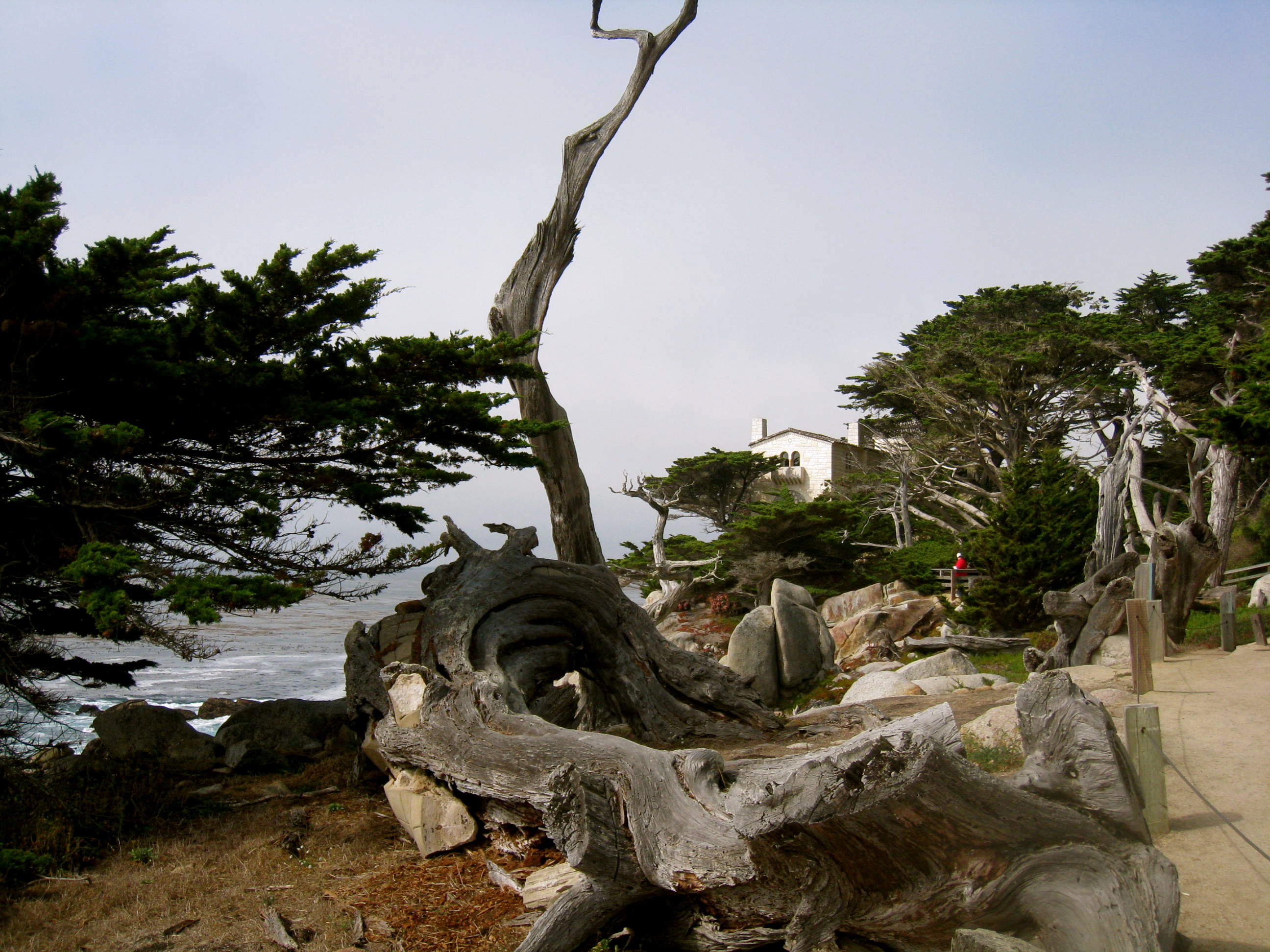 This is the “Ghost Tree”, so called because it is now bleached white. It is a Monterey Cypress.